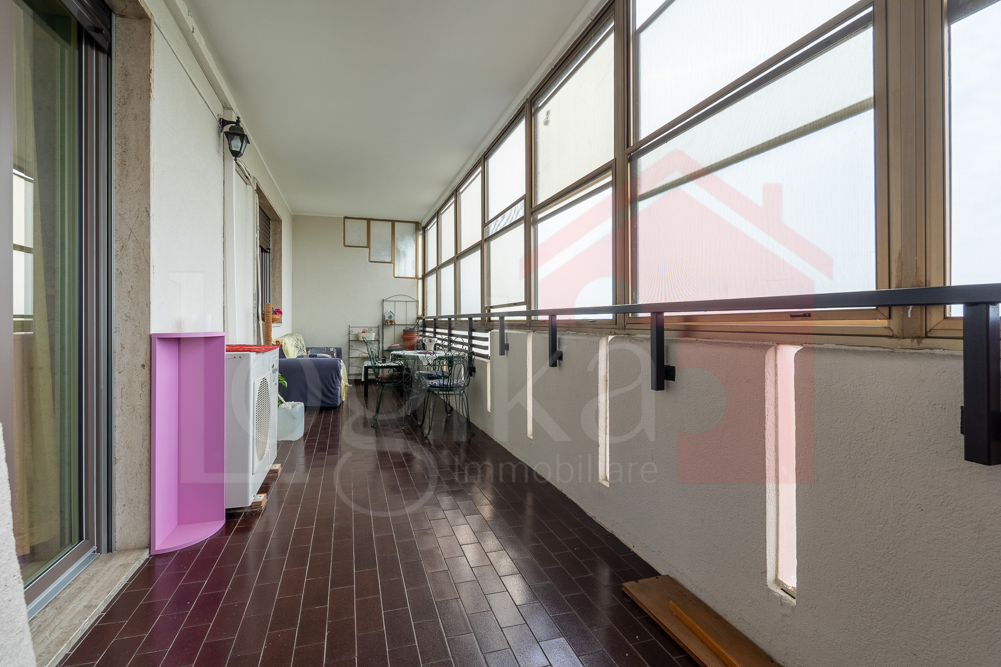 L’appartamento è sito all’ottavo ed ultimo piano dello stabile , ed è così composto : Ingresso; Soggiorno con accesso al primo di due terrazzi verandati; Cucina abitabile con accesso al secondo terrazzo con affaccio interno; Disimpegno ; Due camere da letto con accesso al terrazzo ; Camera matrimoniale con accesso al terrazzo e doppi servizi.