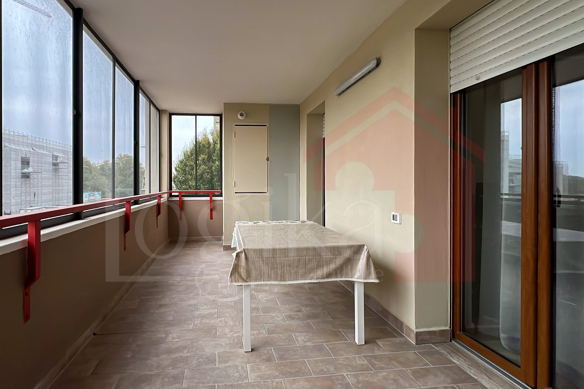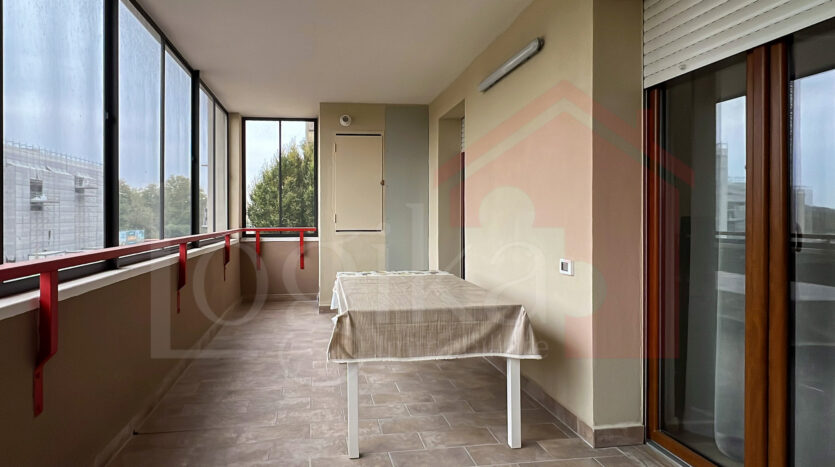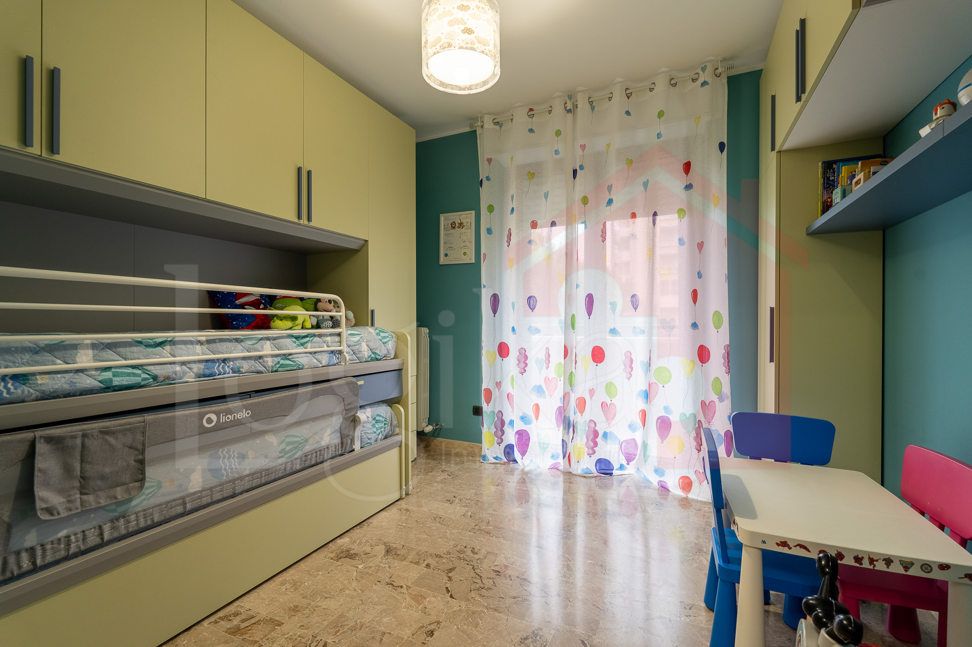 L’immobile sito al secondo di dieci piani è così composto: Ingresso ; Soggiorno con terrazzo ; Cucina abitabile con terrazzo; Disimpegno; Doppi servizi; Ripostiglio; Camera matrimoniale e camera singola entrambe che affacciano sul balcone angolare.